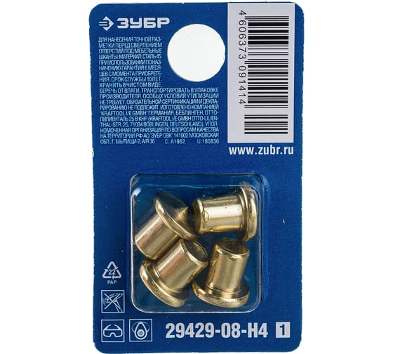 Набор ЗУБР центровка-кернер по дереву 8 мм (4 шт) Профессионал используется для разметочных работ при подготовке к сверлению отверстий. Также применяется при монтаже мебельных шкантов.