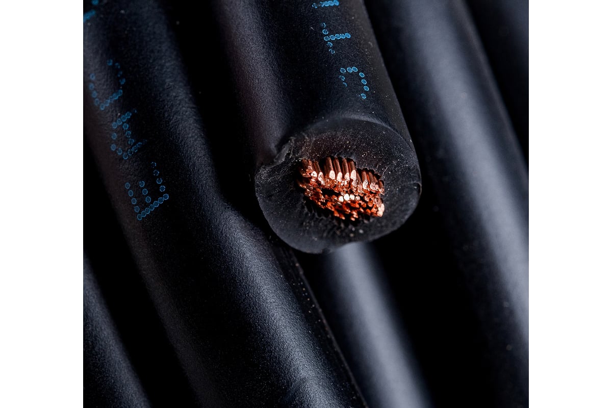 Токопроводящая жила – медная, круглой формы, многопроволочная класса 5 по ГОСТ 22483-2012. Число жил – 1 с номинальным сечением 10,0-50,0 мм². Оболочка из композиции на основе стирольных термоэластопластов. В одножильных кабелях КГтп-ХЛ допускается замена изоляции и оболочки изоляционно-защитной оболочкой из термоэластопласта.