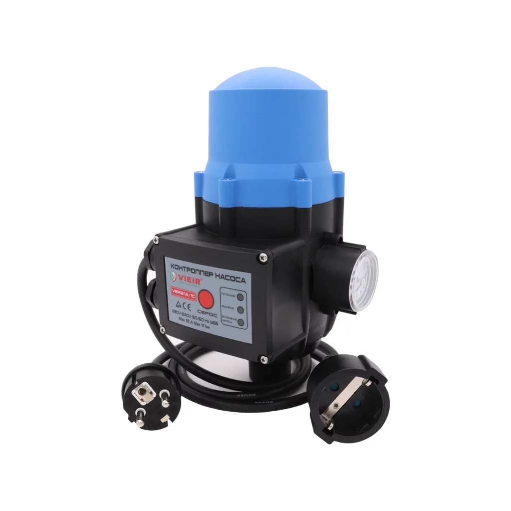 Контролер насоса Vieir VER2.1А с регулятором давления применяется для управления любыми электрическими насосами мощностью до 1,0 кВт. Максимальная температура эксплуатации прибора от +1°С до +60°С. Заводские настройки включения насоса настроены на 1.5 Бар, при необходимости контролер можно перенастроить в диапазоне от 1.0 до 3,0 Бар. Контролер насоса так же защищает насос от его работы в аварийном режиме без воды «сухого хода». Манометр на контролере обеспечивает визуальный контроль давления в системе водоснабжения.