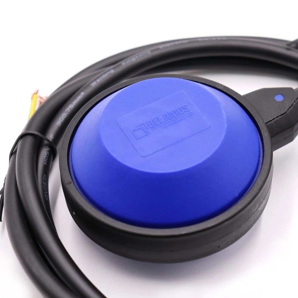 Поплавковый выключатель предназначен для автоматического включения / выключения электрического насоса, в зависимости от уровня воды. В зависимости от схемы подключения, поплавок-переключатель может срабатывать как на включение, так и на выключение насоса. Устройство: Поплавковый выключатель состоит из плавающей пластиковой коробки. Внутри этой коробки находится электрический переключатель и стальной шарик, который при изменении положения поплавка замыкает (или размыкает) контакты переключателя. От переключателя выходят кабель с тремя проводами (обычно это коричневый, синий и черный цвета): один общий и два от нормально закрытого и нормально открытого контактов переключателя. Максимальный ток для реактивной нагрузки (электродвигатели насосов), А4 Максимальный ток для активной нагрузки (лампы, тэны, пускатели), А10, Сечение кабеля: 3х 0,75мм²