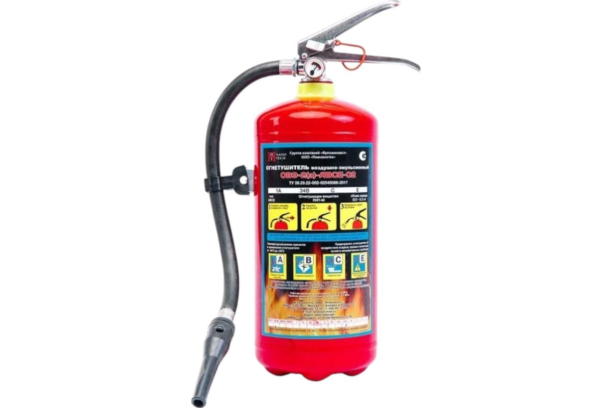 Воздушно-эмульсионный огнетушитель (ОВЭ) относится к профессиональному классу. Он эффективно тушит пожары класса А с рангом 1 и пожары класса B с рангом 34. Корпус изготовлен из алюминия, что обеспечивает прочность и долговечность. Устройство перезаряжаемо, что удобно для использования. Максимальная длина струи огнетушителя составляет 4 метра.