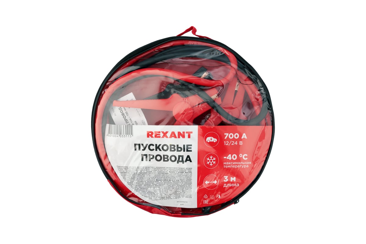 Провода прикуривания 700А 3 м (чехол) - провода вспомогательного запуска или провода прикуривания предназначены для пуска двигателя автомобиля с разряженной аккумуляторной батареей методом подачи стартового тока на клеммы от АКБ другого автомобиля (или от запасного полностью заряженного АКБ). Крепятся провода на клеммы с помощью специальных изолированных зажимов типа "крокодил"  с широким углом захвата, которые обеспечивают надежный контакт.