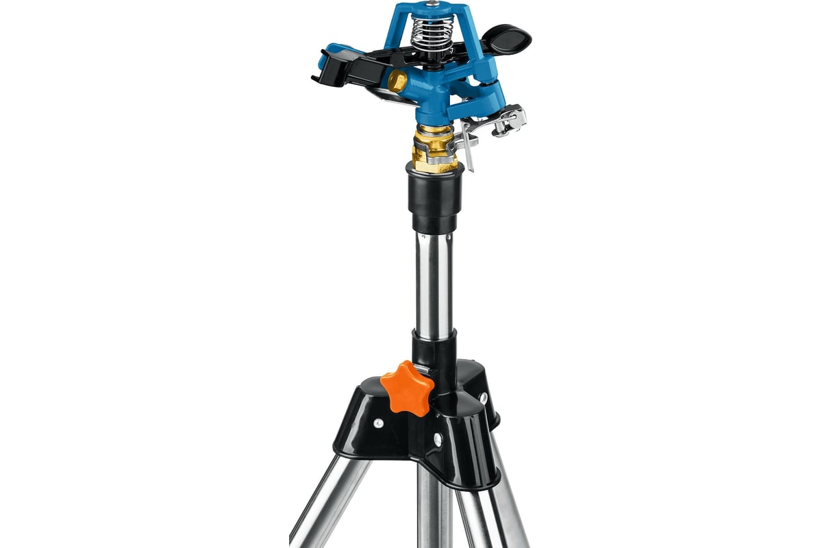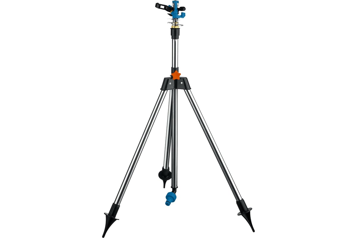 Тренога из хромированной стали обеспечивает надежное крепление устройства на поверхности почвы и сохранение установленного сектора полива неизменным.