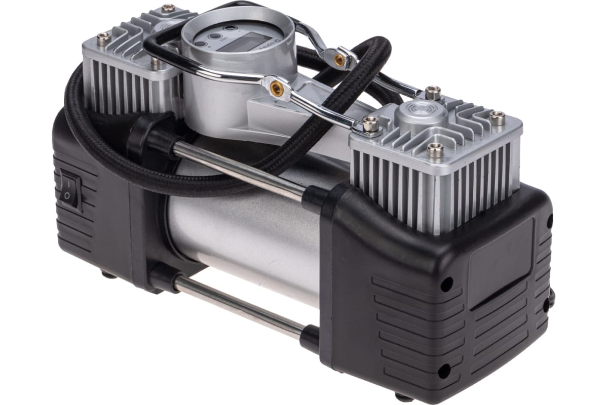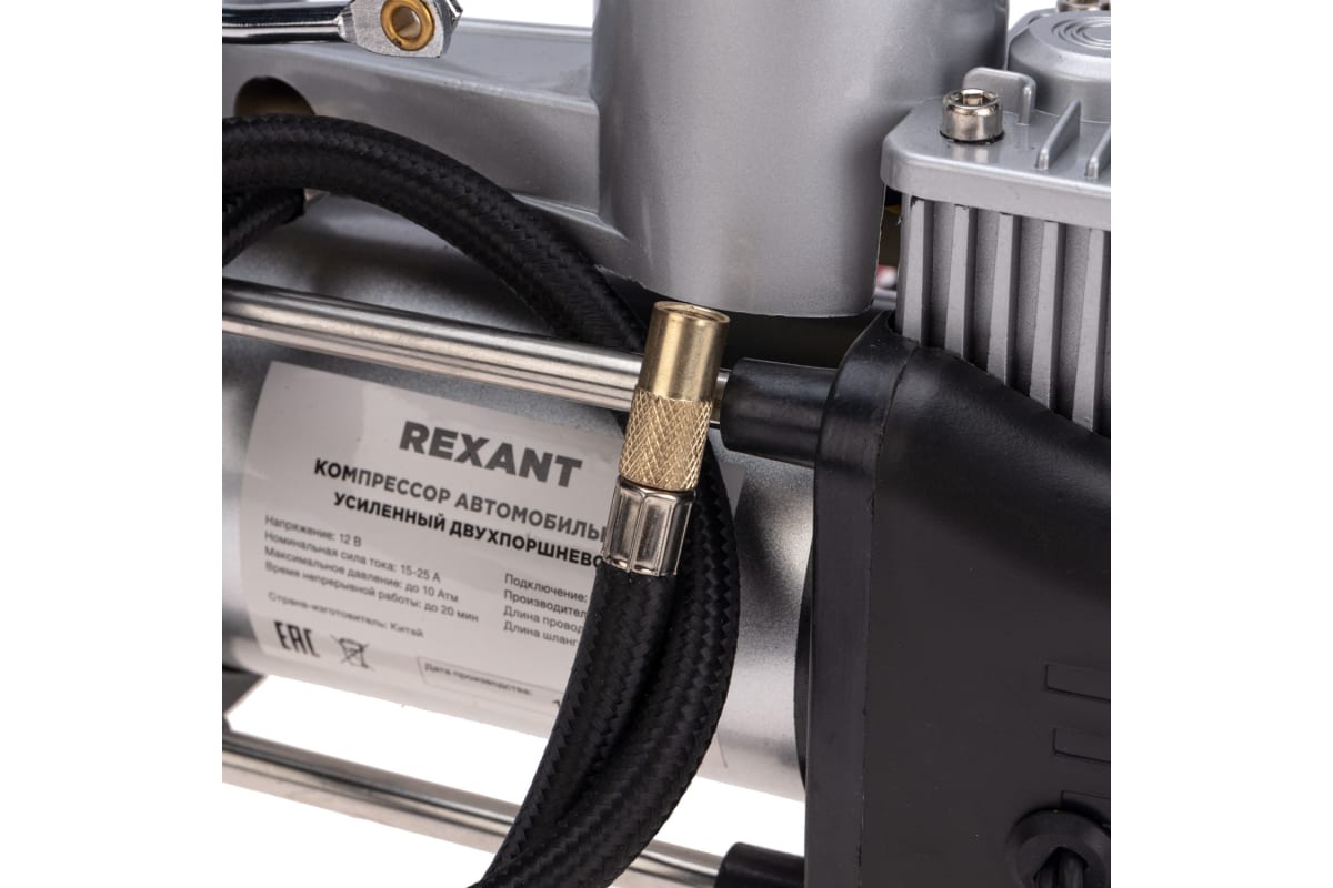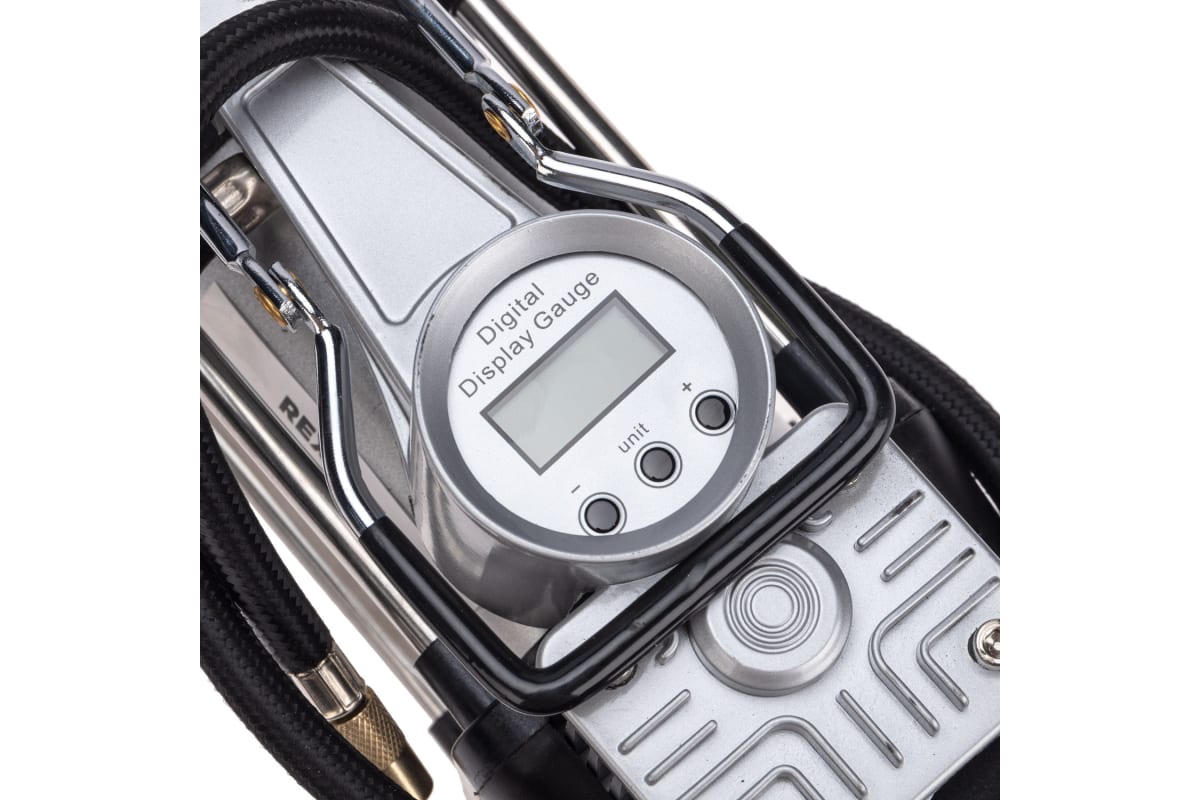 Автомобильный усиленный двухпоршневой компрессор REXANT с цифровым манометром и функцией автостоп, 60 л/мин, 10 атм 80-0522 используется для накачки автомобильных шин легковых автомобилей, кроссоверов, внедорожников и малого коммерческого транспорта.