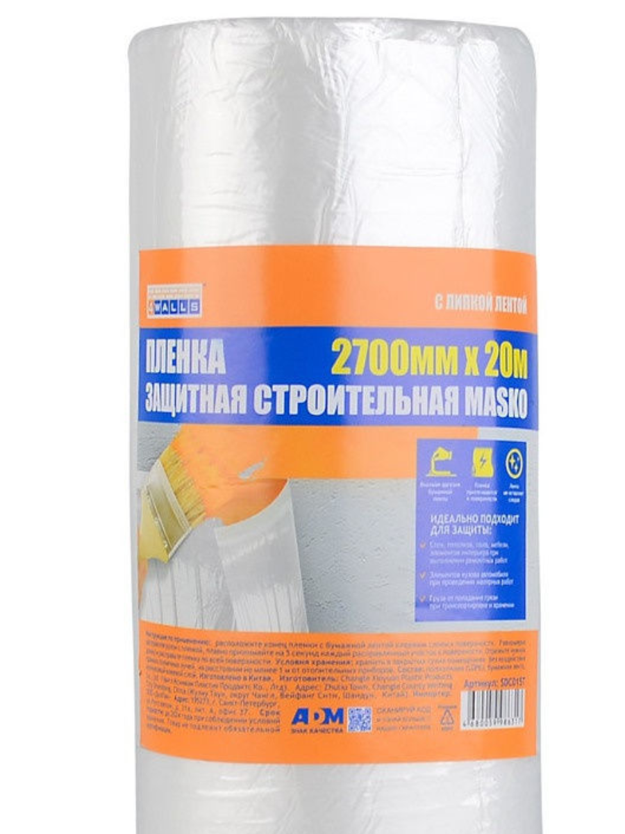 очень удобное в применении защитное покрытие, представляющее собой полотно из полиэтилена низкого давления, совмещенного с бордюром из бумажной клейкой ленты. Наличие креппированой ленты позволяет плотно прикрепить полотно к защищаемой поверхности, надежно ограждая участок рабочей поверхности от попадания краски, штукатурки, влаги, грязи или пыли. Применяется для защиты поверхностей стен, потолков, пола; мебели, элементов интерьера и т.д. при проведении ремонтных и покрасочных работах внутри и снаружи помещения.