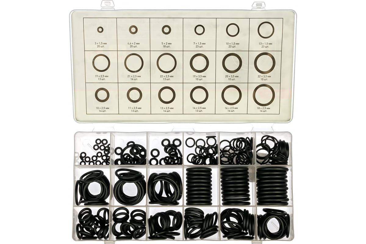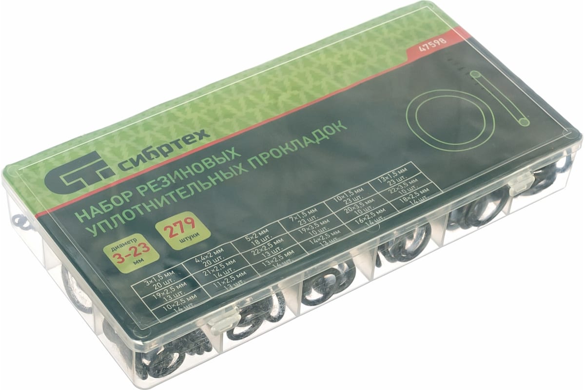 Набор резиновых уплотнительных прокладок СИБРТЕХ D 3 - 22 мм поставляется в компактном кейсе из пластика, который обладает отсеками под каждый размер и нумерацией размеров на крышке. Прокладки выполнены из резины и служат для герметизации различных соединений, например, для предотвращения утечки. В комплекте представлены уплотнительные прокладки самых распространенных размеров.