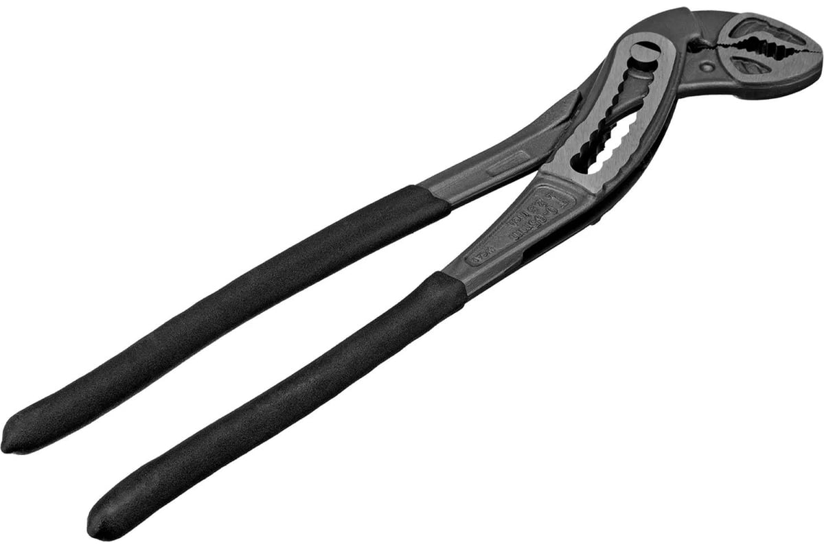 Переставные клещи длиной 300 мм, с обливными рукоятками, предназначены для фиксации и вращения деталей и заготовок различной формы. Подходят для захвата фитингов, труб, крепежных элементов. Инструмент используется при проведении ремонтных, монтажных, сантехнических работ.