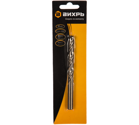 Угол заточки наконечника – 135 градусов. Данные сверла изготовлены из высокопроизводительной быстрорежущей стали Р6М5, придающей инструменту дополнительную твердость и теплостойкость. Так же они подвержены термо-химической обработке, что повышает их износостойкость. В результате этой обработки они приобретают жёлтый оттенок. Твёрдость – 64-66 HRC. К данному инструменту предъявляются повышенные требования по точности и качеству изготовления, поэтому сверла подходят для профессионального использования. В отличие от дешёвых свёрл, изготовленных из обычной быстрорежущей стали, свёрла Р6М5 «Вихрь» позволяют работать в несколько раз быстрее, менее подвержены нагреву, значительно дольше сохраняют качество заточки. Свёрла имеют цилиндрический хвостовик.