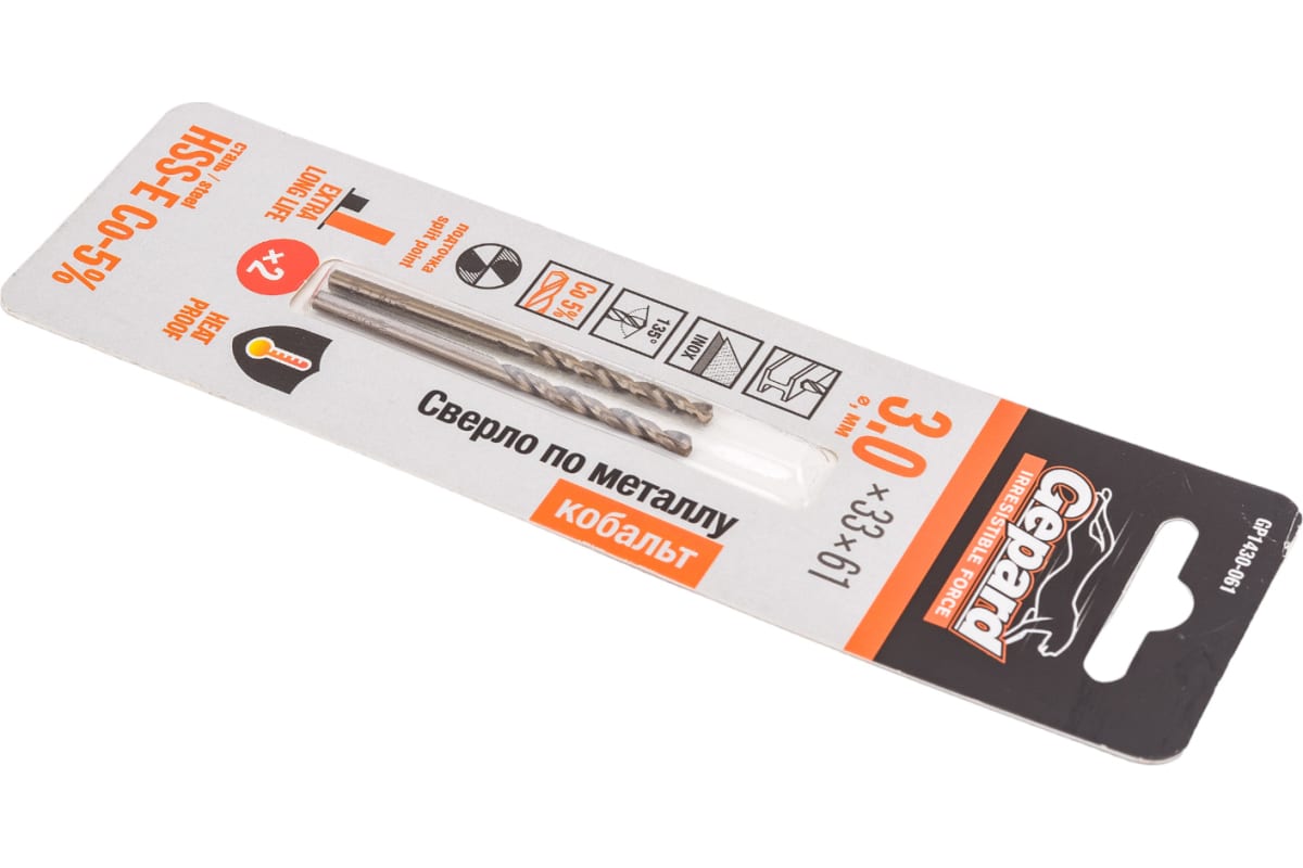 Сверло по металлу 3,0 мм Gepard предназначено для сверления отверстий в конструкционных углеродистых и легированных сталях, нержавеющих и жаростойких сталях прочностью до 1000 N/mm2, титане и его сплавах, бронзе, латуне, цветных металлах, чугуне, твердом пластике.