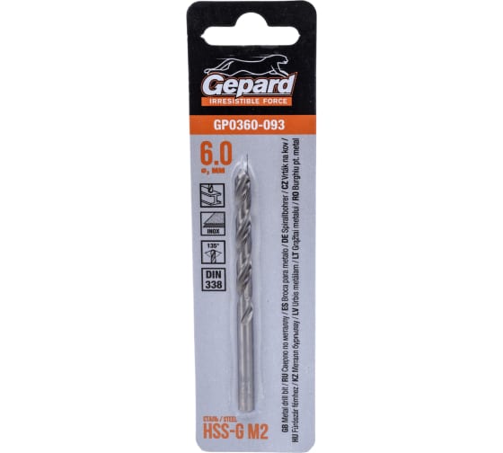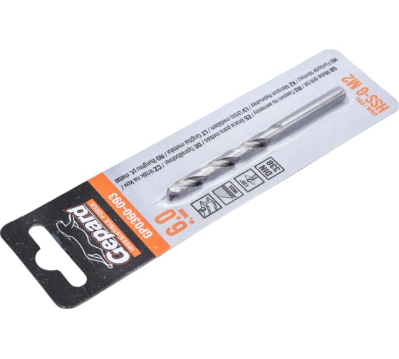 Сверло по металлу ц/х 6.0х57х93 мм, HSS-G GP0360-093 применяется для сверления отверстий в конструкционных углеродистых и легированных сталях, цветных металлах, чугуне, твердом пластике.