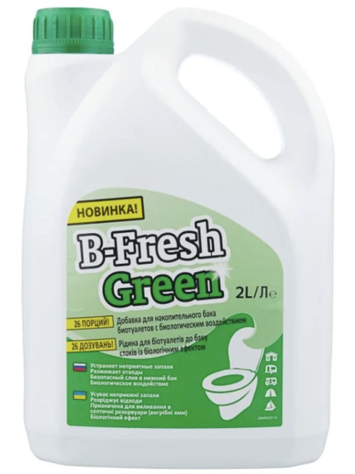 Туалетная жидкость Thetford B-Fresh Green это добавка зеленого цвета для накопительных баков биотуалетов. Благодаря своему биологическому воздействию средство устраняет запахи и разжижает отходы.