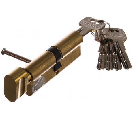 Цилиндровый механизм APECS SM-80(35/45)-G 09062 - механизм секретности замка с рабочей частью, представленной цилиндром, который может быть повёрнут в корпусе только когда в скважину внутри цилиндра вставлен штатный (свой) ключ. Материалом сердечника и цилиндра является латунь. В комплект входит 5 ключей.