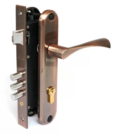 Замок врезной ЗВ "Зубер" 8523-85 с ручками,трехригельный бронза
