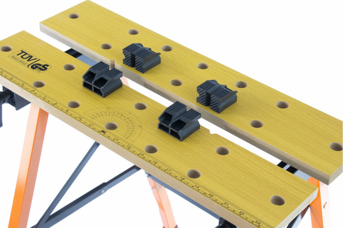 Верстак-тиски SPARTA 257055 применяется в небольших ремонтных мастерских. Столешница изготовлена из МДФ, что гарантирует устойчивость к нагрузкам до 100 кг. Благодаря складной конструкции изделие отличается удобством хранения и транспортировки. Тиски позволяют надежно фиксировать заготовки для их дальнейшей обработки.