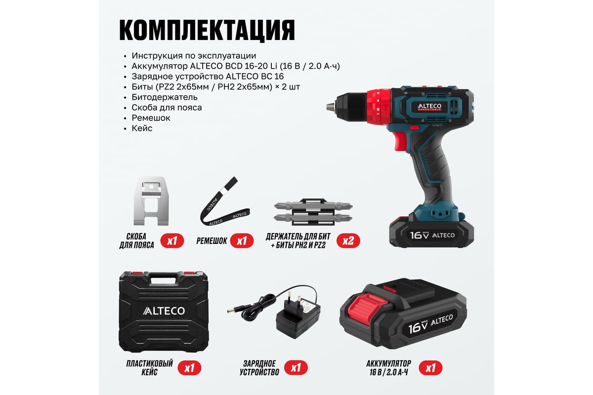 Дрель-шуруповерт аккумуляторная CID 16-28 Alteco