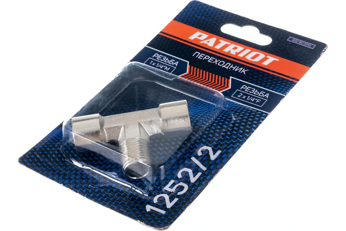 Переходник T-1/4MFF Patriot предназначен для соединения участков пневмомагистрали во время монтажа. Крепление осуществляется с помощью резьбы 1/4". Созданная конструкция обладает высокой надежностью и герметичностью.