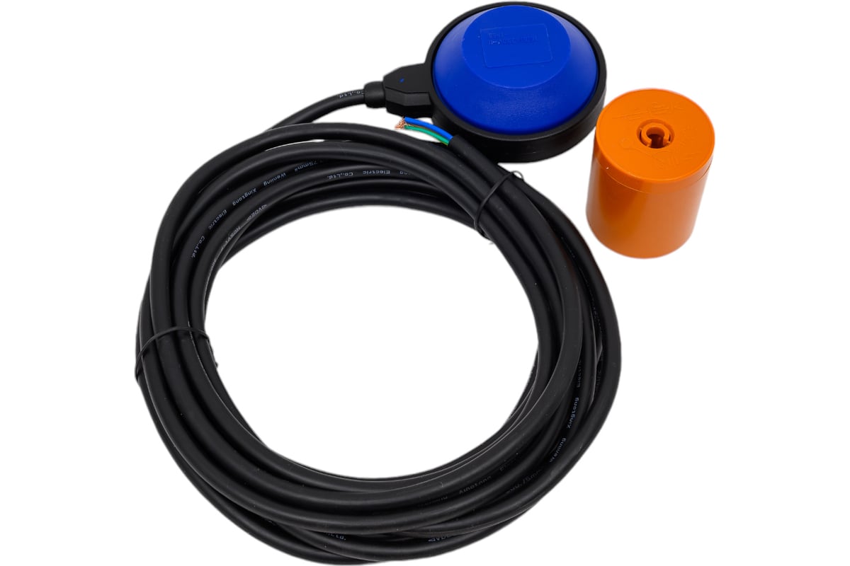 Поплавковый выключатель предназначен для автоматического включения / выключения электрического насоса, в зависимости от уровня воды. В зависимости от схемы подключения, поплавок-переключатель может срабатывать как на включение, так и на выключение насоса. Устройство: Поплавковый выключатель состоит из плавающей пластиковой коробки. Внутри этой коробки находится электрический переключатель и стальной шарик, который при изменении положения поплавка замыкает (или размыкает) контакты переключателя. От переключателя выходят кабель с тремя проводами (обычно это коричневый, синий и черный цвета): один общий и два от нормально закрытого и нормально открытого контактов переключателя. Максимальный ток для реактивной нагрузки (электродвигатели насосов), А4 Максимальный ток для активной нагрузки (лампы, тэны, пускатели), А10, Сечение кабеля: 3х 0,75мм²