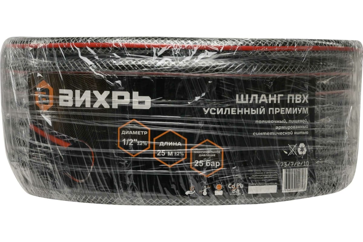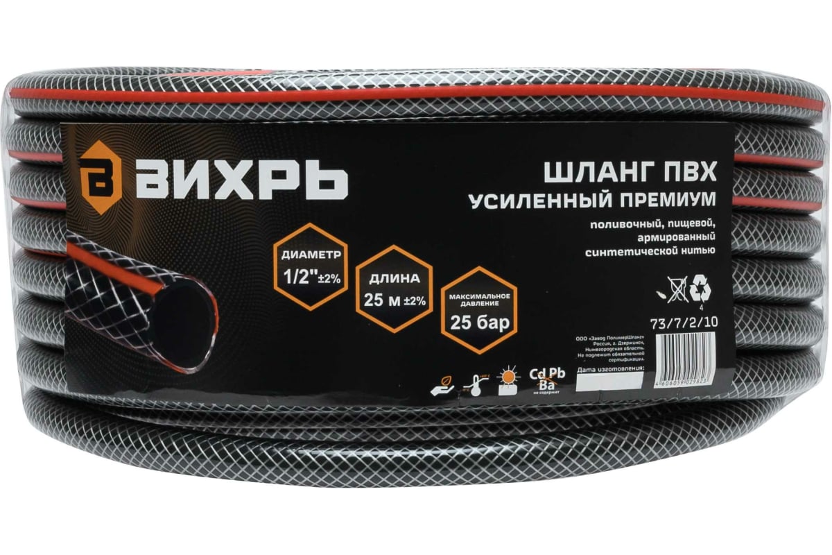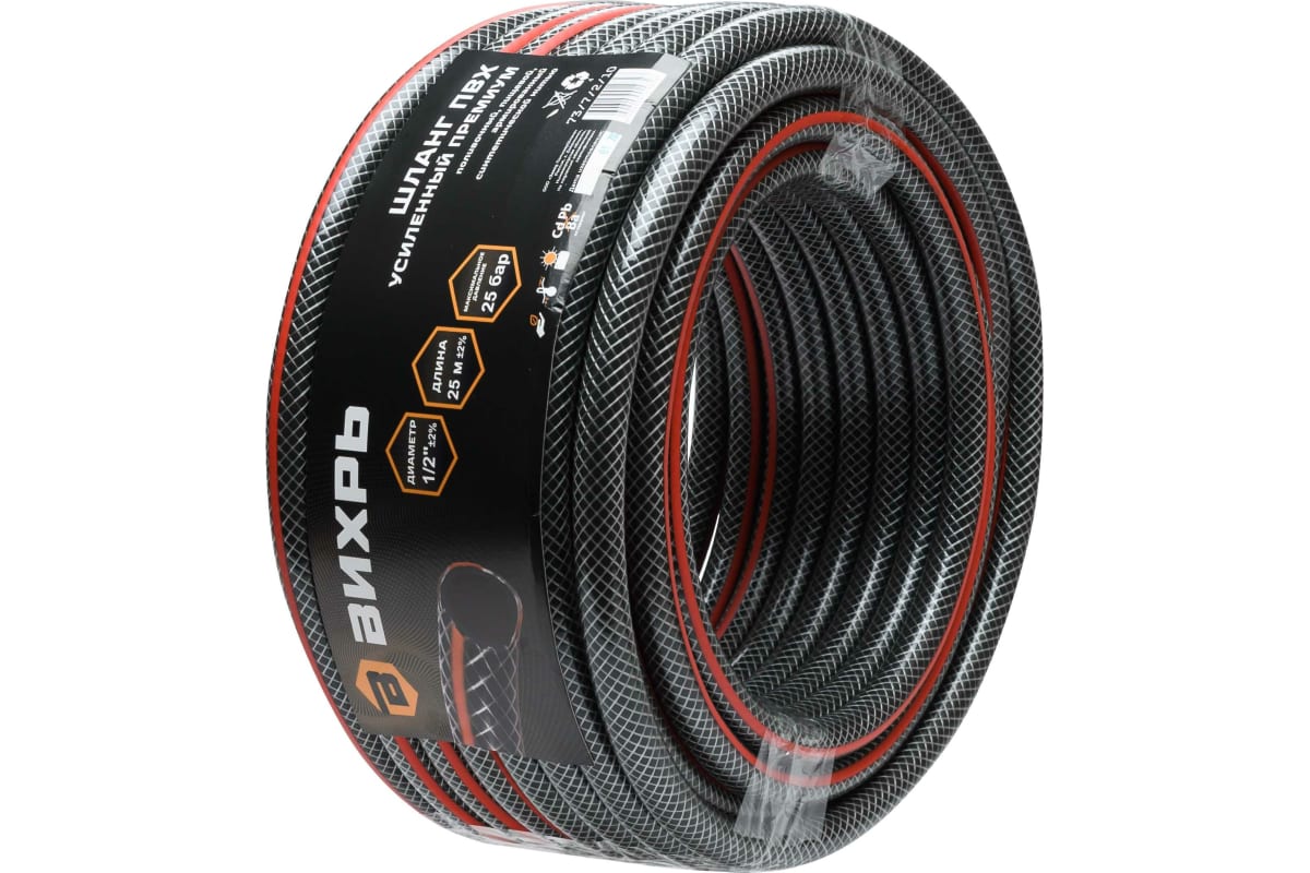 Шланг поливочный ПВХ 1/2 25м Вихрь усиленный пищевой