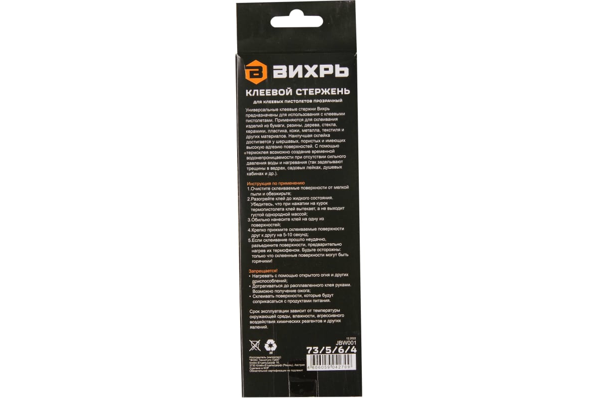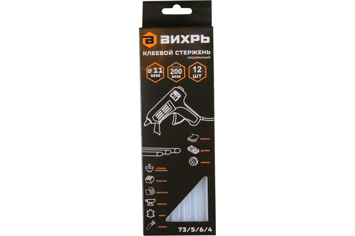 Стержень клеевой 11х200мм 12 шт Вихрь используется совместно с клеевыми пистолетами, является универсальным и применяется для склеивания изделий из дерева, металла, пластика, ткани, кожи, стекла, керамики, бумаги, картона, резины.