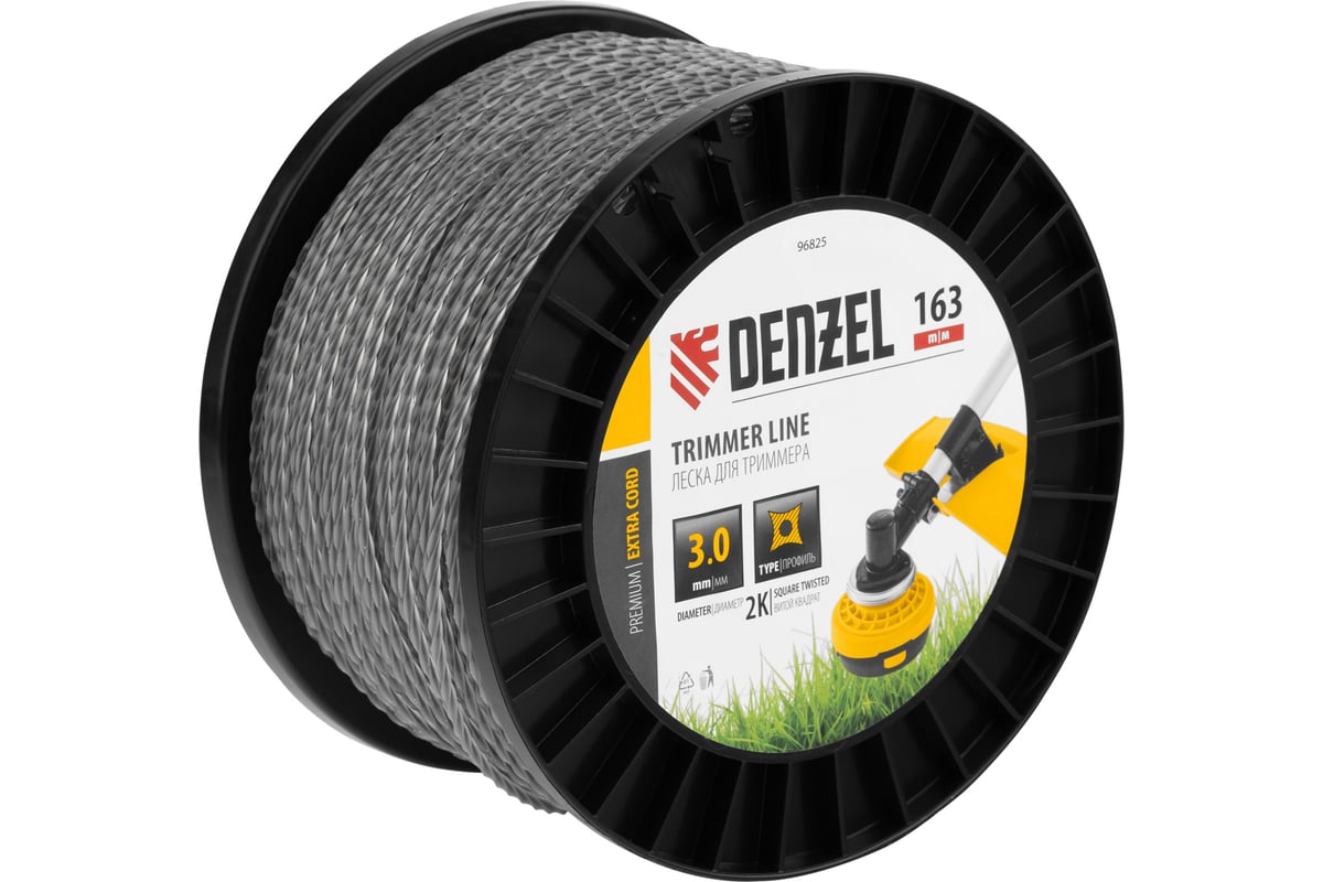 Леска для триммера витой квадрат, 3,0 мм х 163 м, EXTRA CORD DENZEL 96825
