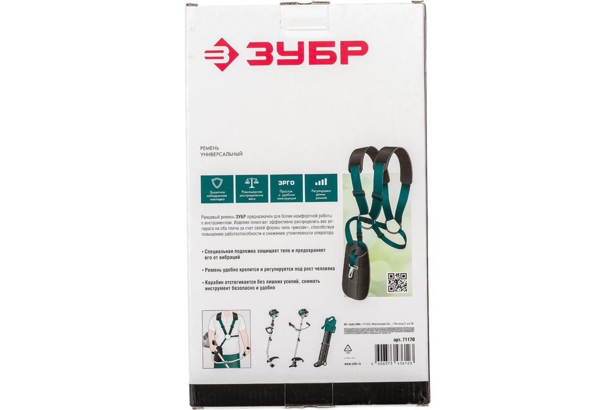 Универсальный ремень для триммеров ЗУБР 71170 предназначен для более комфортной работы с триммером. Изделие помогает эффективно распределить вес аппарата на оба плеча за счет своей формы типа «рюкзак», способствуя повышению работоспособности и снижению утомляемости оператора.