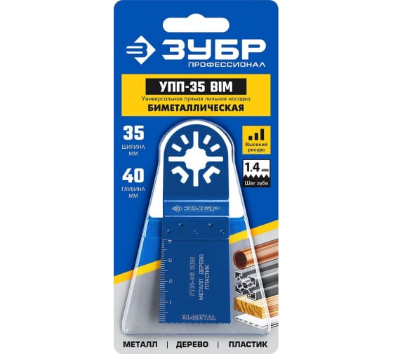 Универсальная прямая пильная насадка УПП-35 Зубр 15561-35 предназначена для удаления резки изделий из металла, древесины и пластика с помощью многофункционального инструмента. Изготовлена из биметалла.