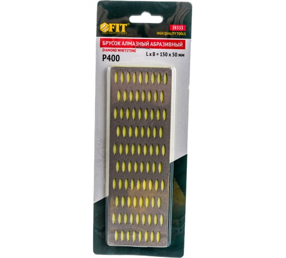 Брусок абразивный алмазный FIT HQ 38333 предназначен для заточки особо твердого инструмента, ножей, ножниц и пр. Имеет покрытие из порошка технических алмазов. Упаковка – блистер.
