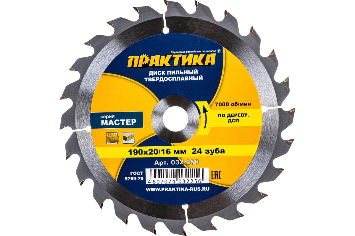 Диск пильный по дереву ДСП ПРАКТИКА 190 х 20/16 мм 24 зуба
