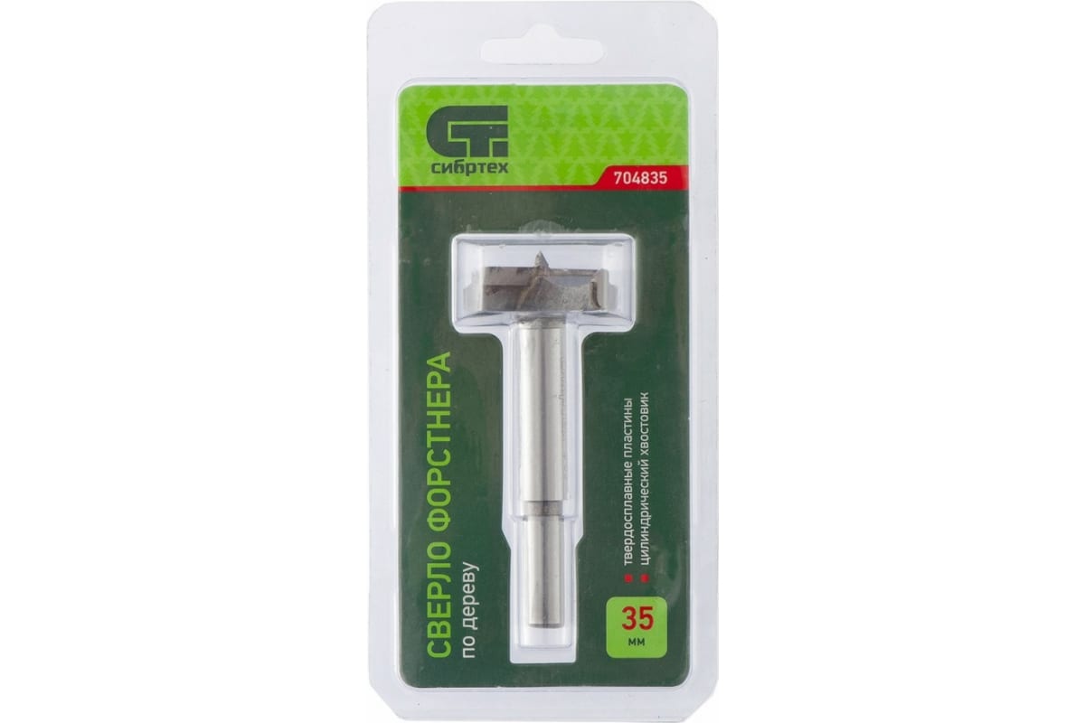 Сверло Форстнера по дереву Сибртех 704835 с цилиндрическим хвостовиком, используется для получения глухих отверстий диаметром 35 мм в древесине, ДСП, ДВП и других материалах. Благодаря продуманной конструкции инструмента стенки и дно отверстий получаются ровными и гладкими. Сверло применяют для производства мебели, а также отделочных работ.
